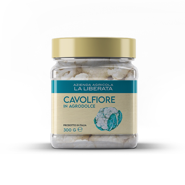 Ingredienti: cavolfiori 46,9 %, aceto di vino bianco (CONTIENE SOLFITI), vino bianco, zucchero, sale, pepe